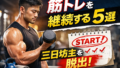 筋トレが続かない人へ。三日坊主にならないための筋トレ継続のコツを5つ解説します。結果を出すための知識、習慣化のポイント、無理なく続ける方法を紹介。