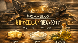 料理の美味しさを大きく左右するのが「脂」です。同じ食材でも、使う脂が変わるだけで味・香り・仕上がりは大きく変わります。しかし家庭では、とりあえずサラダ油オリーブオイルが体にいいと聞いたから全部それという使い方になっている人も多いのではないで...